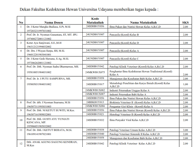Surat Tugas Semester Genap 2024-2025 Dosen Pengampu Mata Kuliah S3 Progran Setudi Doktor Ilmu Peternakan Fakultas Peternkan Unverskitas Udayana